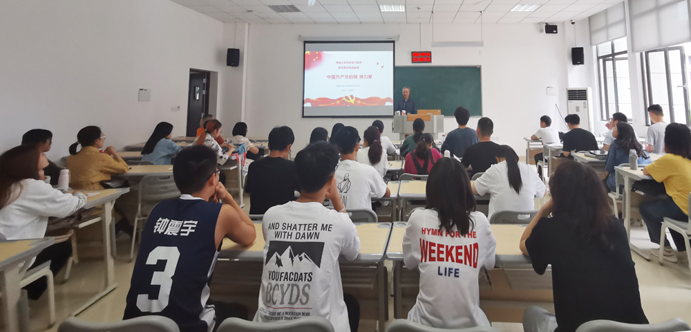 本次活动邀请了西南大学荣昌校区离退休党委第一党支部书记张益民老师为全体支部成员讲党史故事。张益民老师以“中国共产党的精神力量”为主题,详细而生动地讲解了红船精神、井冈山精神、长征精神、延安精神和西柏坡精神的深刻内涵以及其背后的革命故事。无论毛主席当年借着清油灯一根灯芯的微弱灯光,写下《中国的红色政权为什么能够存在?》、《井冈山的斗争》两篇光辉著作,回答当时“红旗到底打得多久”的故事还是红军在藏区筹粮期间,毛主席妻子贺子珍的弟弟贺敏仁因违反纪律而被处死的故事都让同学们为之动容。同学们纷纷表示在张老师声情并茂的讲述下,对中国共产党的历史和中国革命精神有了更加深刻的理解。