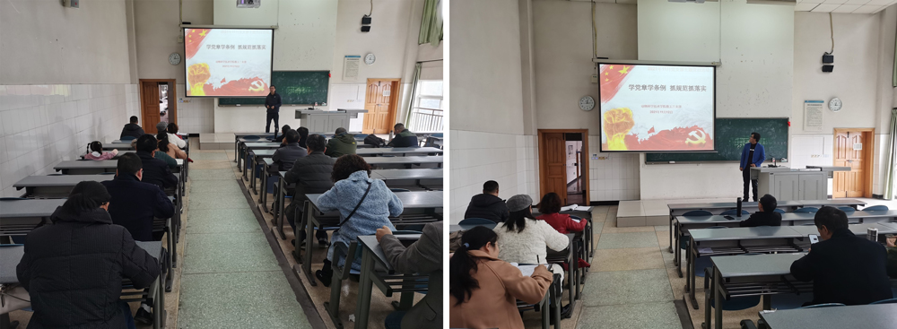 各党支部结合有关学习材料认真学习《中国共产党章程》《中国共产党简史》关于“《中国共产党章程》的修改”内容、《中国共产党普通高等学校基层组织工作条例》《第三批新时代高校党建“双创”工作重点任务指南(基层党支部)》、党的十九届六中全会精神及重庆市高校党的建设工作会议精神。随后,各支部结合实际,围绕“加强党支部标准化规范化建设”,开展深入讨论。