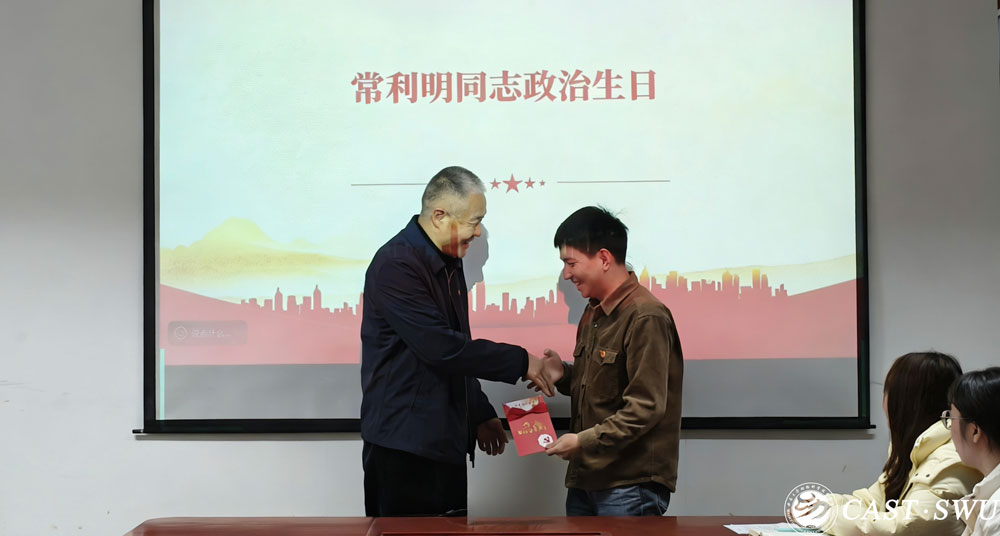 会上,党支部还为近期新入职的教师党员常利明同志举行了庄严的“政治生日”仪式。葛信勇向常利明同志赠送政治生日贺卡,并勉励其坚定理想信念,在教书育人中发挥先锋模范作用。