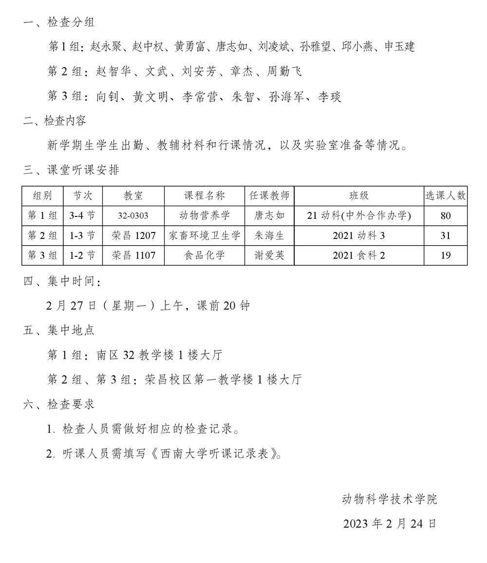 2023年春季学期开学教学检查安排