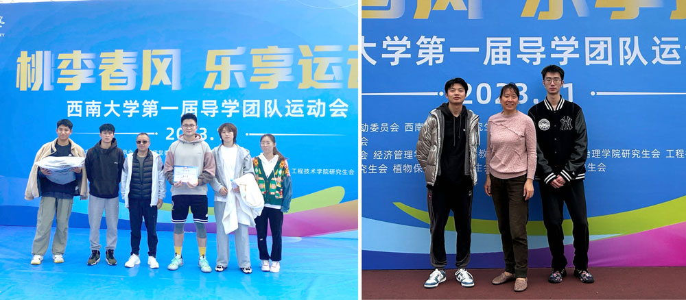 11月25日至26日,西南大学举行第一届研究生“桃李春风 乐享运动”导学团队运动会,学院导学运动队由刘安芳教授等5名老师和10名研究生组成,参加了趣味类项目和竞技类项目,并喜获佳绩。