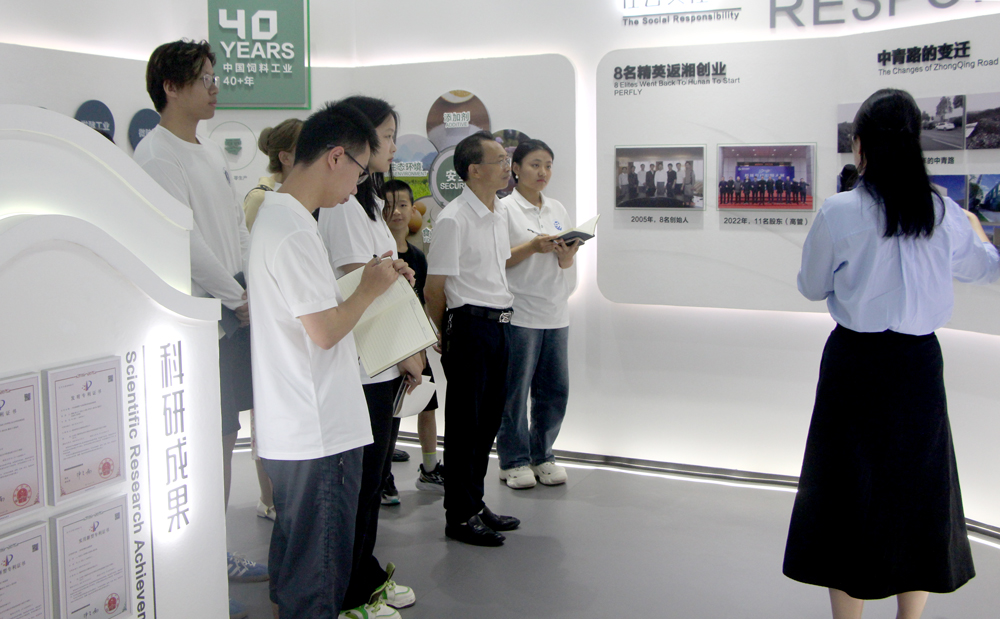从科技前沿理论的反复实验论证,到原料的精挑细选、严格的清洁预处理,到饲料加工时严谨精确的配方、均匀充分的混合、精准无误的制粒等一系列操作流程,实践团成员参观公司生产一线,切实体会到公司在创新发展农牧新产品方面的坚定执着,领略到公司凭借前沿科技引领未来的高远志向,也明确了现代农业专业技能需时刻伴身、不断努力探索。