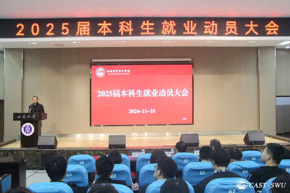 为促进毕业生高质量充分就业,11月18日,学院召开2025届本科毕业生就业动员大会,会议通过视频连线在荣昌校区和北碚校区同时进行。学院党委书记赵智华、副院长向钊、赵中权出席,2021级本科生辅导员、班主任和全体学生参加,会议由党委副书记、纪委书记文武主持。