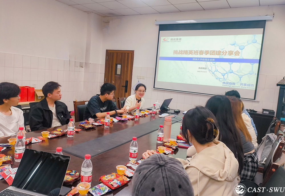 为推动产学研紧密结合,着力培养高质量动科人才, 4月8日,学院第十一届“挑战精英班”在荣昌校区2409-1会议室开展2025年春季学期班级活动。挑战集团总裁助理、大客户事业部二部总经理陈艳青、添加剂西南战区总经理丁昌思,“挑战精英班”校内班主任彭香以及全体班级成员参加,活动由班长徐荟莲、副班长张有弛主持。