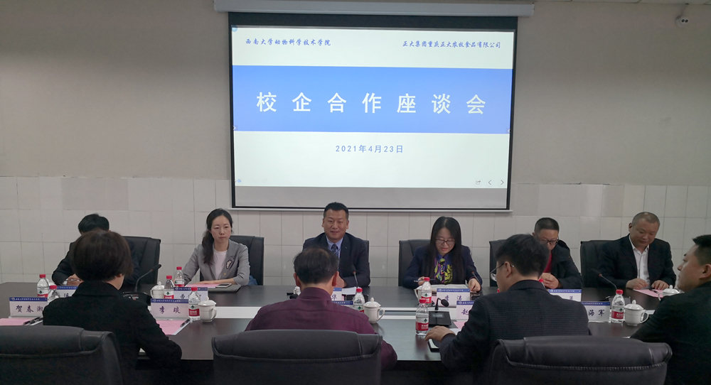 4月23日下午,学院与正大集团在荣昌校区2404会议室举行校企合作座谈会,学院党委书记赵智华、党委副书记、纪委书记文武及办公室人员参加座谈,会议由文武主持。