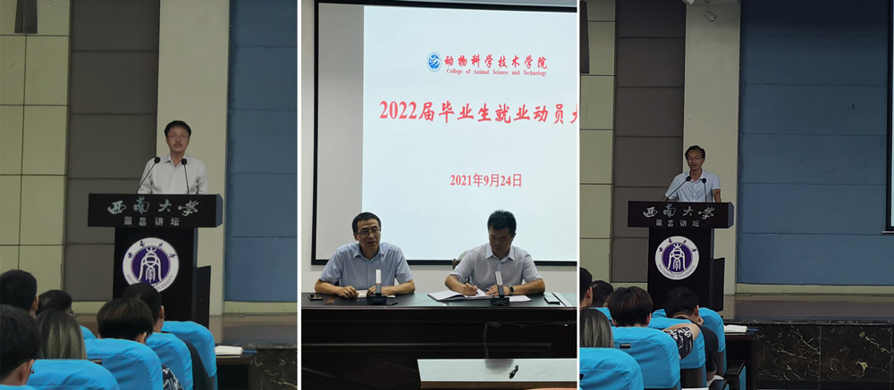 聚焦就业问题,拓宽就业途径。学院党委高度重视学生就业工作,通过动员全体老师为学生提供就业信息、定向联系推荐单位、邀请企业开展线上线下讲座报告、为学生答疑解惑、提供必要的条件支持、据实报销校区间往返校车费等方式,切实解决学生的迫切问题;同时邀请优秀毕业生进校园举办经验分享会;开展就业促进周系列活动,让学生在校园内就能了解就业形势和相关政策,帮助学生选到适合自己的企业和岗位。9月24日,学院分别在荣昌、北碚召开2018级就业动员大会,着重结合2019、2020、2021三届毕业生就业数据,分析当前的就业形势和毕业生的主要去向,鼓励学生正视当下严峻的就业形势,围绕考研、考公、教师招考、自主创业等目标,结合自身实际尽早确定就业方向;并从六个方面庄重承诺给予学生就业帮扶。