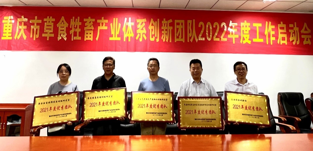 启动会上,赵永聚教授总结报告了市农业农村委对团队2021年绩效考评情况,介绍了2022年主要任务、重点项目清单、绩效目标及工作要求等。他还宣读了产业体系《关于表彰草食牲畜产业技术体系2021年度绩效考核优秀团队的决定》,其中羊品种选育与种质资源保护利用功能研究室 (岗位专家:赵永聚)、 渝西综合试验站(站长:赵中权)、肉羊生态养殖与产品加工功能研究室(岗位专家:黄勇富)、家兔健康养殖功能研究室(岗位专家:王永康)、草食牲畜保障体系功能研究室(岗位专家:范彦)获得年度考核优秀团队,并为各优秀团队颁发奖牌。