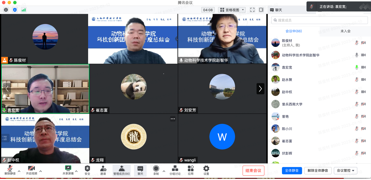 随后,学院6个科技创新团队依次汇报了2022年度科研工作进展、所取得的成果以及2023年工作计划。听取各团队汇报后,赵中权介绍了学院2022年取得的科研项目和科研成果,并指出了各个团队存在的不足和今后努力的方向。