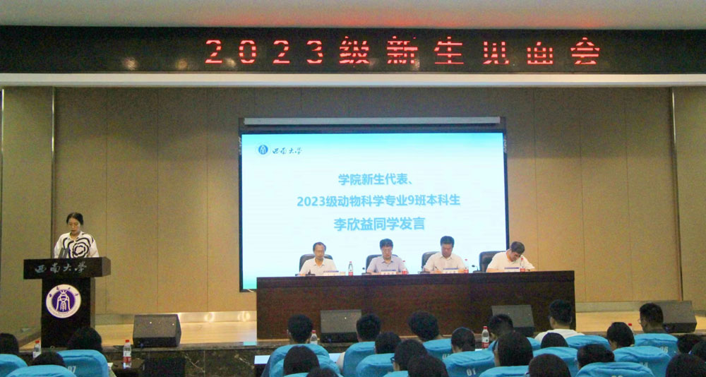 9月11日下午,学院在荣昌校区2211报告厅举行2023级本科新生见面会。学院党委书记赵智华,院长赵永聚,党委副书记、纪委书记文武,副院长向钊,学院系主任、新生辅导员、班主任及261名新生参加会议。会上,院长赵永聚向新同学们介绍了学院的办学历史、专业特色和就业前景,希望同学们学号专业知识,争做“六有”新动科人才。学院教师代表韩玉竹副教授、在校生代表王琼和新生代表李欣益同学依次做了发言。