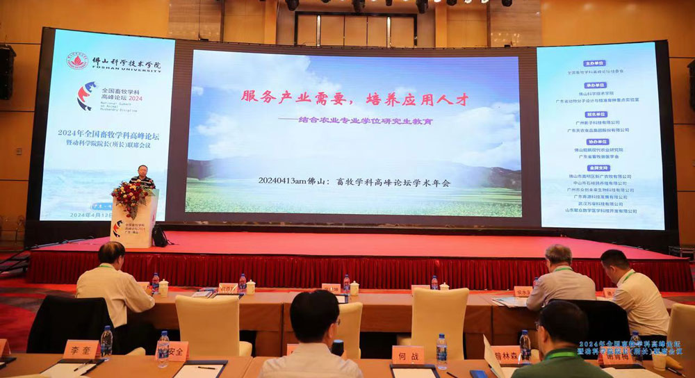 4月12日至15日,由全国畜牧高峰论坛组委会主办、佛山科学技术学院承办的2024年全国畜牧学科高峰论坛暨动科学院院长(所长)联席会议在广东佛山举行,来自全国高校、科研院所300余名学校领导、动科学院院长、畜牧研究所所长、学科带头人和企业代表等参加会议。学院院长赵永聚带领副院长向钊、赵中权,教学科研骨干刘安芳、夏耀耀、刘凌斌、白广栋和办公室主任周勤飞等参加会议。