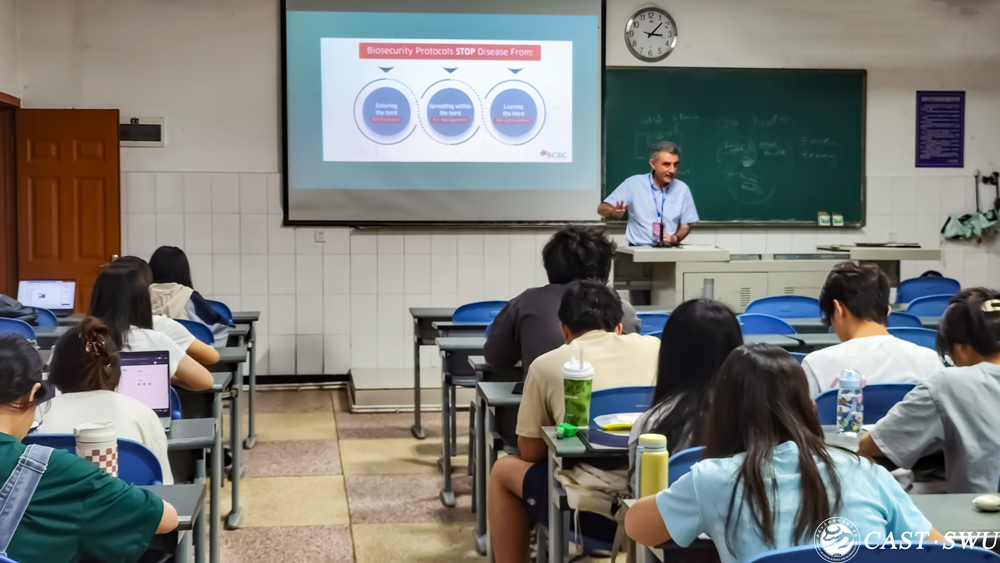 课程凭借其专业实用的知识与独特的文化魅力,点燃了学生们的学习热情。即便身处酷暑中的重庆,来自动物科学、动物医学、动物药学、中兽医学、水产养殖、市场营销等多个专业的180余名学生仍然踊跃参与。课堂上,教授们不仅传授扎实的专业知识与实践经验,更通过丰富的图片、视频素材,展现了意大利古罗马文明的生动风情与伊朗古波斯文明的深厚底蕴,为同学们打开了一扇感知世界多元文化的窗口。这种跨文化的生动演绎,有力助推了学生对成为有宽广国际视野的新时代动科人的追求。