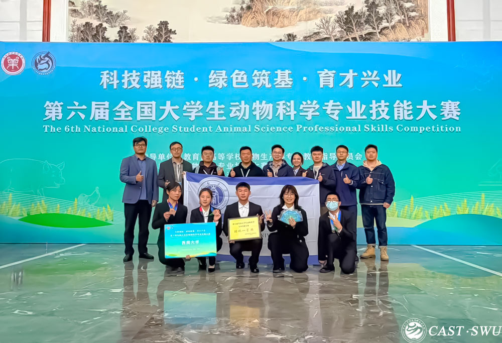 10月17日至19日,由教育部高等学校动物生产类专业教学指导委员会指导、国家动物科学专业技能大赛联盟主办的第六届全国大学生动物科学专业技能大赛在河南牧业经济学院举办,由贺叶斌、燕晴、刘起、李欣益和郎玉涵五名学生组成的学院代表队,与全国73所高校代表队同台竞技。学院代表队凭借扎实的专业技能与出色的团队协作,荣获团体一等奖,并收获“项目一 生态畜牧场规划设计”单项一等奖、“项目二 饲料原料快速鉴定与掺假识别”和“项目三 鸡的精液采集、品质检测及人工授精”单项二等奖的优异成绩。