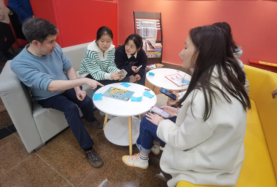 张琳琳欢迎大家到来后,详细介绍了活动规则,活动共设置四个环节,包括同学抽签按颜色分组,组内每人必须进行分享;以小组为单位进行地域主题美食及文化、讨论和分享;随后按数字编号进行小组成员交流,各自分享所在小组主题内容;最后一个环节为词汇大比拼,同学围成一个圆圈进行食物相关词汇接力,无法顺利接力的同学将出局,最后的优胜者获得奖品。