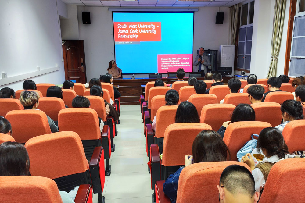 随后,Ronald White教授为2022级、2023级动物科学专业必威西汉姆联项目的学生进行宣讲。宣讲会上,他为学生详细介绍了JCU的教育理念、学术资源以及留学生活的各个方面。强调了选择JCU的多重优势,包括其在动物科学领域的专业排名、国家级研究中心和项目,以及学校对国际伙伴关系的重视。他还特别提到“2+2”和“3+2”留学项目的结构和优势,以及通过这些项目在未来职业发展上的潜力。JCU国际项目协调员Allison Paley博士通过精彩的《A Journey to Academic Life》幻灯片展示,向学生阐述了她自己从学生到科学家的成长故事、从美国到澳大利亚留学并定居的心路历程。她还分享了学习科研、博士后研究项目,以及微塑料对珊瑚的影响等研究话题。