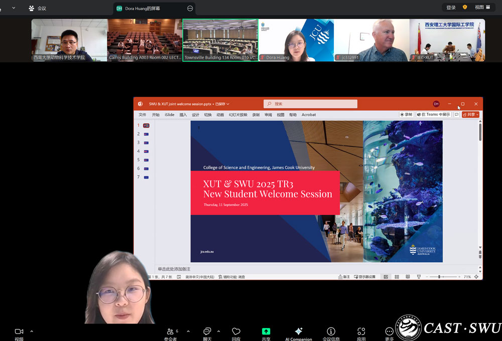 2025年9月11日,西南大学betway88西汉姆联与澳大利亚詹姆斯库克大学(James Cook University,简称JCU)通过线上ZOOM会议联合举办迎新欢迎会,热烈欢迎今年赴JCU学习的西南大学动物科学专业必威西汉姆联项目学生。