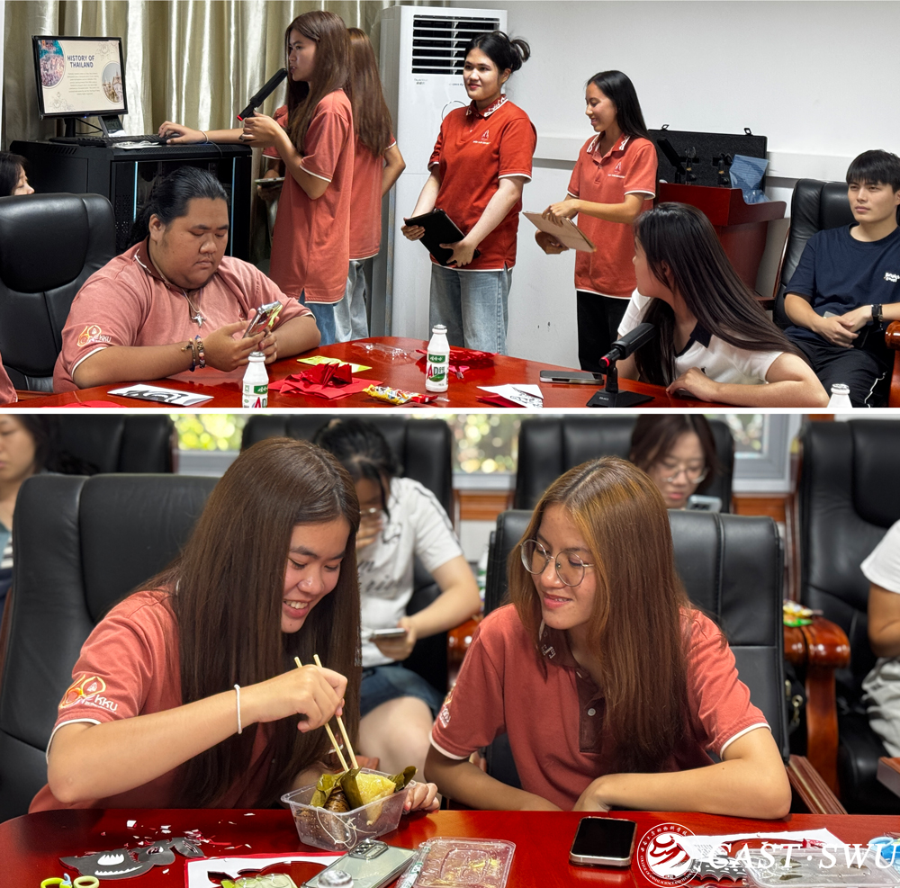 活动尾声,中泰学子共同品尝了香甜的粽子,在轻松愉快的氛围中交流两国文化习俗与求学经历。最后,大家一起合影留念,为这场跨越国界的文化对话划上圆满句号。本次交流活动不仅增进了中泰青年之间的相互了解,更以文化为纽带,搭建起友谊的桥梁,增进了中泰青年之间的相互了解,未来我院将继续开展此类文化交流活动,促进中外青年间的对话与理解,在新时代新征程中大力弘扬中华文明。