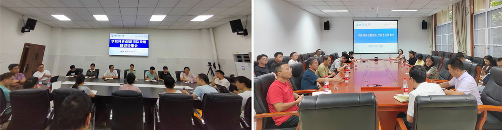 做好学院科研创新团队改组工作,进一步提升学院科研水平,9月19日、20日,学院分别在荣昌校区2-2404会议室和北碚校区37教219召开了学院科研创新团队改组意见征集会议。会议由副院长赵中权主持,院长赵永聚、各团队负责人以及青年教师出席了本次会议。